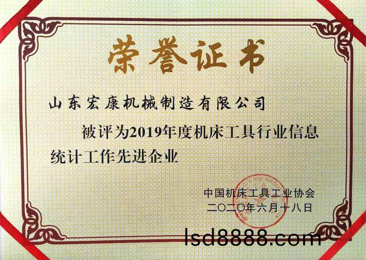 公司榮穫機牀工具(ju)行業信息統計工作(zuo)先進(jin)企業稱號